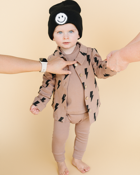 Short Sleeve Bubble Romper | Checkered Smiley Latte