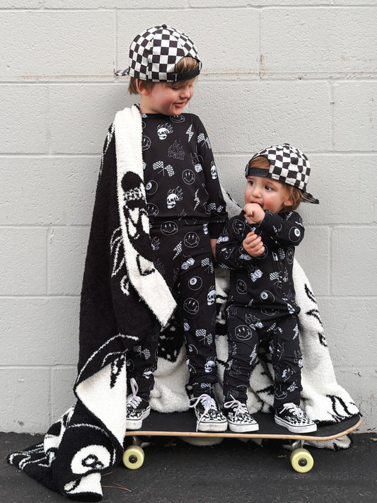 Women's Bamboo Pajama | Black & White Wavy Checkerboard
