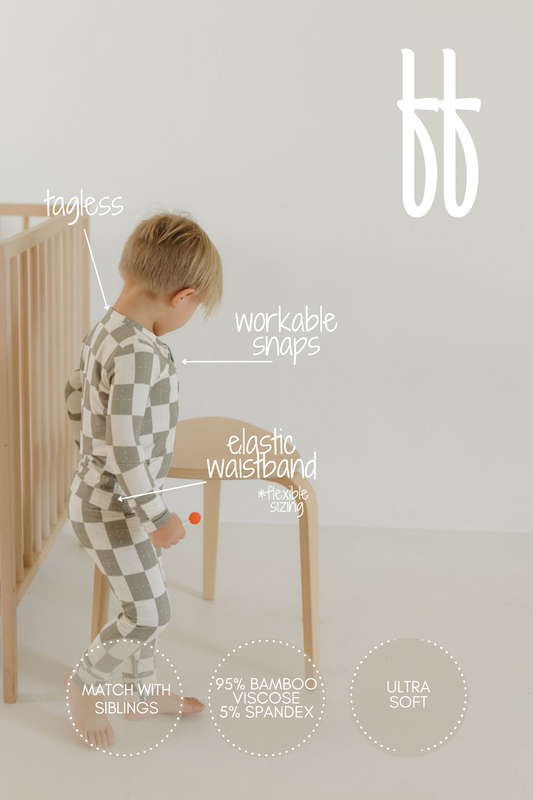 Bamboo Zip Pajamas | Olive Checkerboard