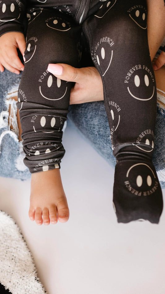 Bamboo Zip Pajamas | White & Black Lightning Bolt
