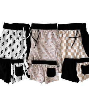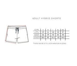 Take on the beach, the gym and all wet and dry in between. Our Hybrid Shorts feature a high quality, stretchy, water repelling material for functionality and your comfort.  Match with your minis in Our Hybrid Shorts and create memories to last a lifetime!