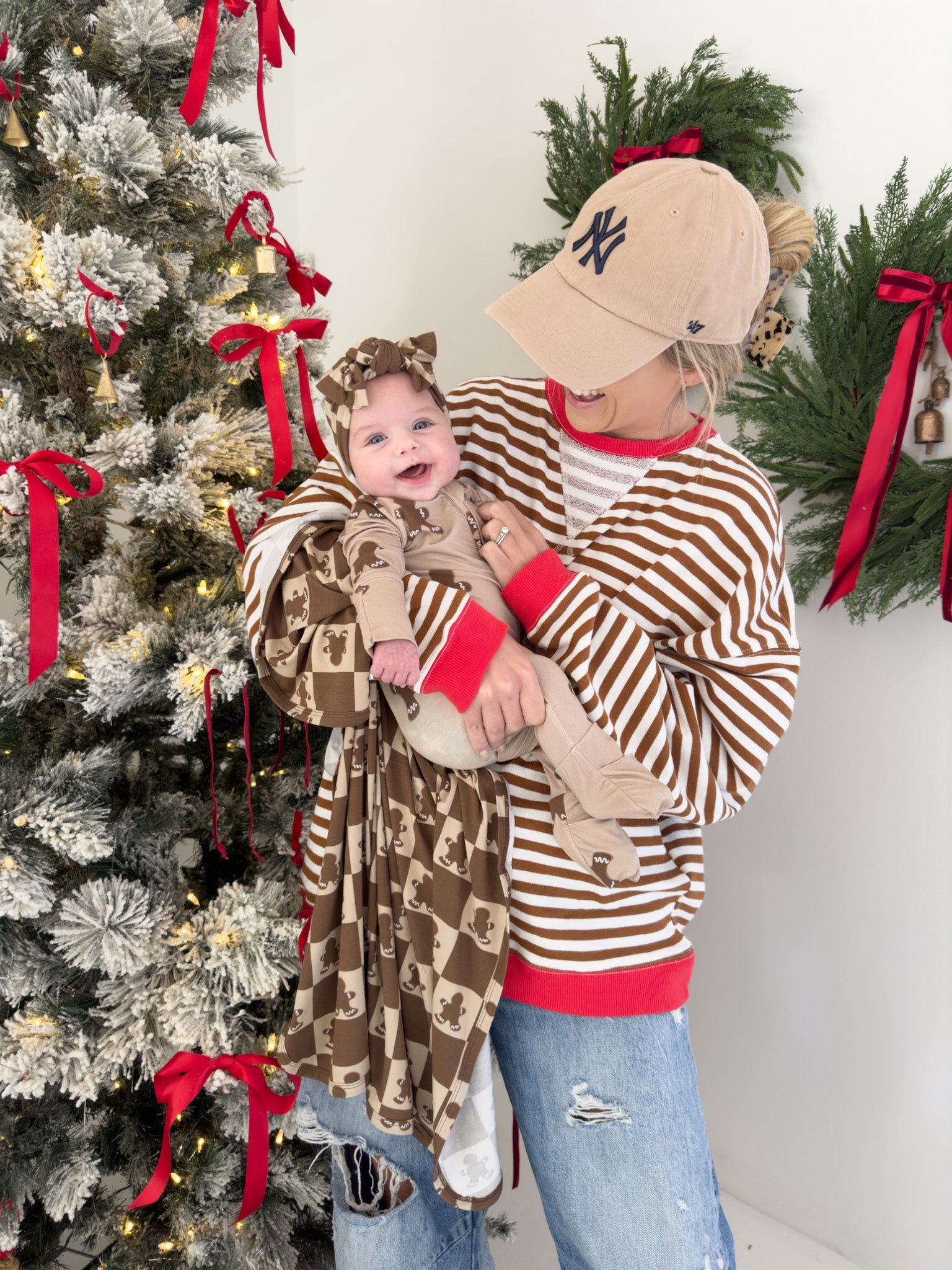 Bamboo Head Wrap | Gingerbread Checkerboard 2024