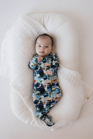 These gowns are a newborn essential. Made with the softest bamboo that is a dream on newborn skin. The knotted bottoms make diaper changes a breeze.