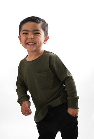 The Spring Breeze Collection, a Collection filled with the perfect transitional Winter to Spring colors. Our Bamboo Ribbed Long Sleeve Pocket Tees are made of our scrumptiously soft bamboo ribbed material; making them the best option for those with sensitive/eczema prone skin, or for those who love the extra comfort. Pair our Long Sleeves with the matching Joggers + Bow, or mix + match with our various options for an effortless look.