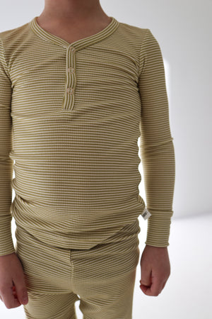 Bamboo Two Piece Pajamas | Willow Stripe Ribbed