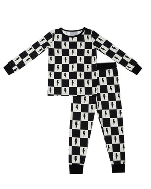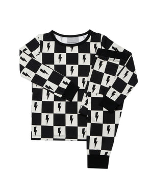 Get ready to fall in love with our Checks & Bolts two piece set! This bamboo two piece set features a playful cream and black checkered pattern with adorable bolts scattered throughout. Our bamboo two-piece pajama is the perfect blend of style, softness, and functionality for your little bundle of joy. Your little one will stay cozy and comfortable, whether it's playtime, nap time, or cuddle time.