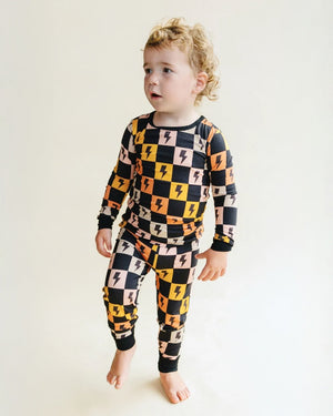 Our Colorful Checks & Bolts two piece set is the ultimate trio of style, comfort, and convenience! With its vibrant checkered pattern and playful bolts, this bamboo two piece set is sure to become your child's new favorite. Our bamboo two-piece pajama is the perfect blend of style, softness, and functionality for your little bundle of joy. Your little one will stay cozy and comfortable, whether it's playtime, nap time, or cuddle time.