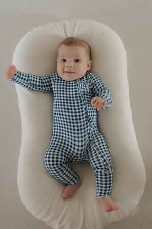 Bamboo Zip Pajamas | Blue Gingham