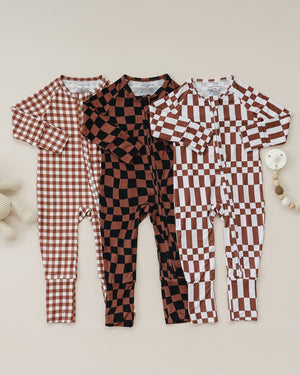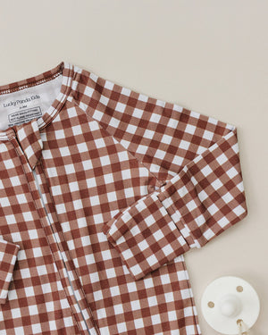 Sweet and timeless, the Chocolate Gingham blends vintage charm with modern comfort. The chocolate-toned gingham pattern makes this piece picture-perfect while keeping your little one cozy for all-day play.