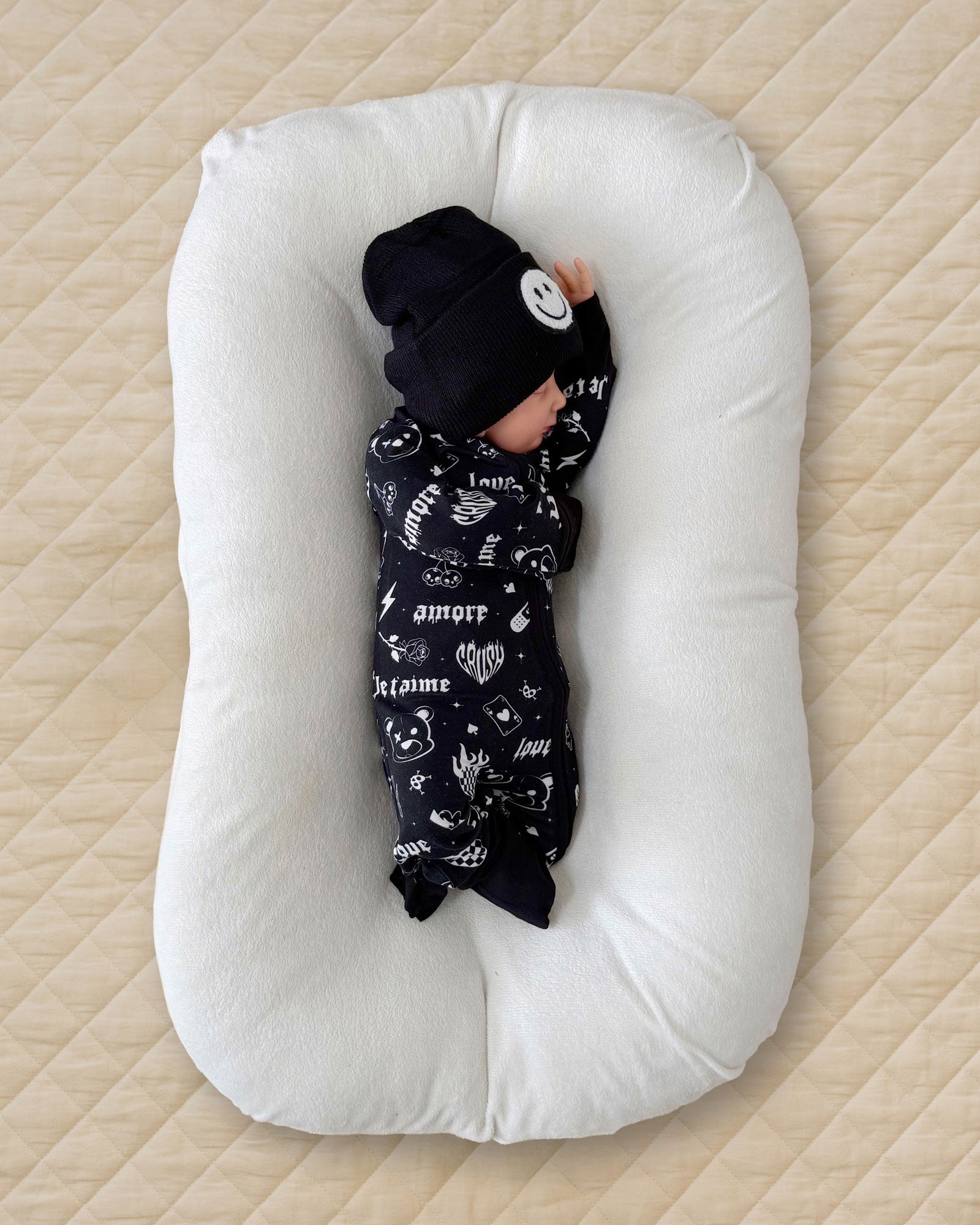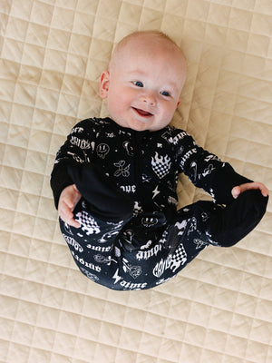 • Two-Way Zipper: Allows for easy, hassle-free diaper changes and dressing.