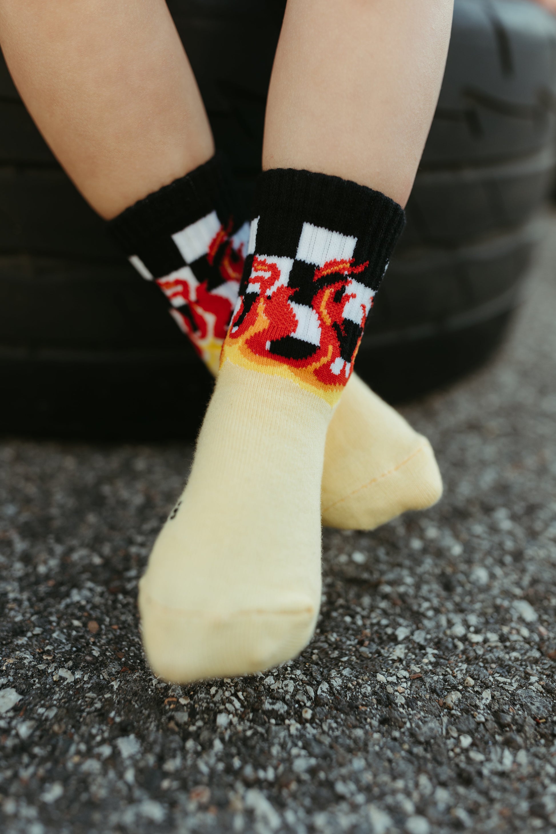 Sizes Infant, Extra Small, Small, Medium have logo grips on the bottom of the feet large have a stitched logo on the bottom of the feet.