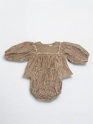 A timeless honey gingham set that’s made for everyday moments. The matching top and bloomers make getting dressed easy, comfy, and adorable. Pair it with our Bows Cardigan for the coziest layered look.