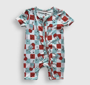 Double Zip Short Sleeve Romper for easy diaper changes, tagless and generous sizing for grow with me.