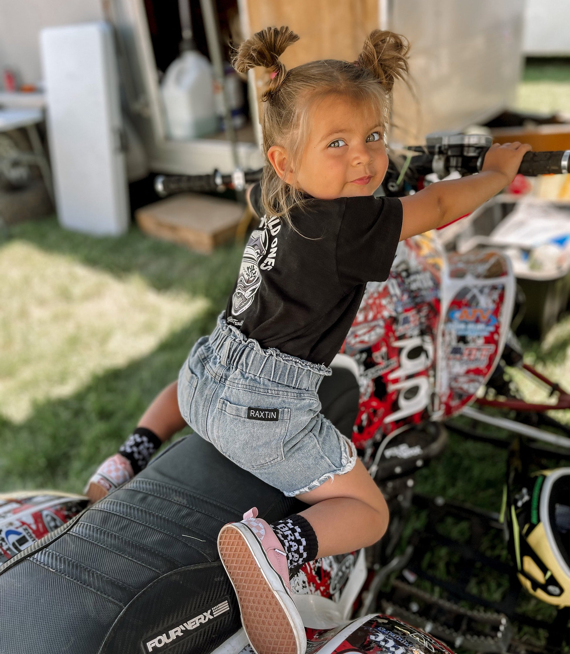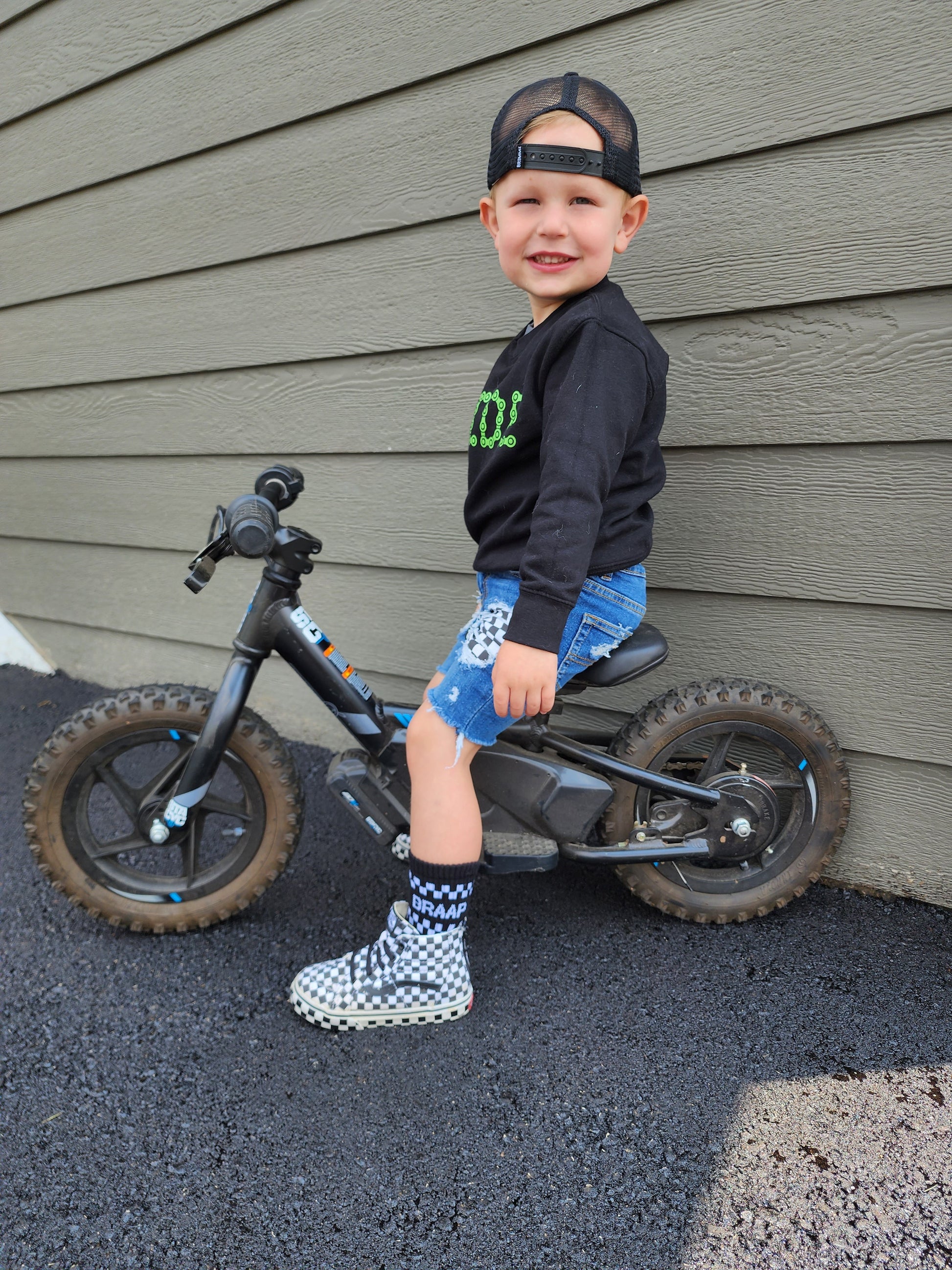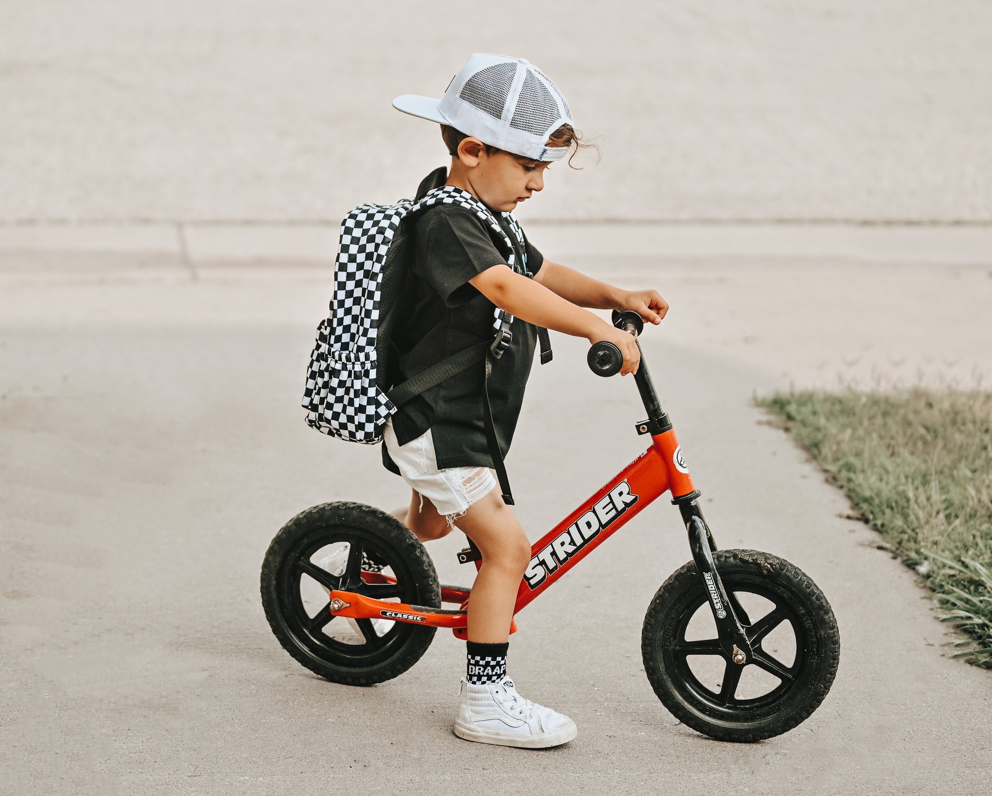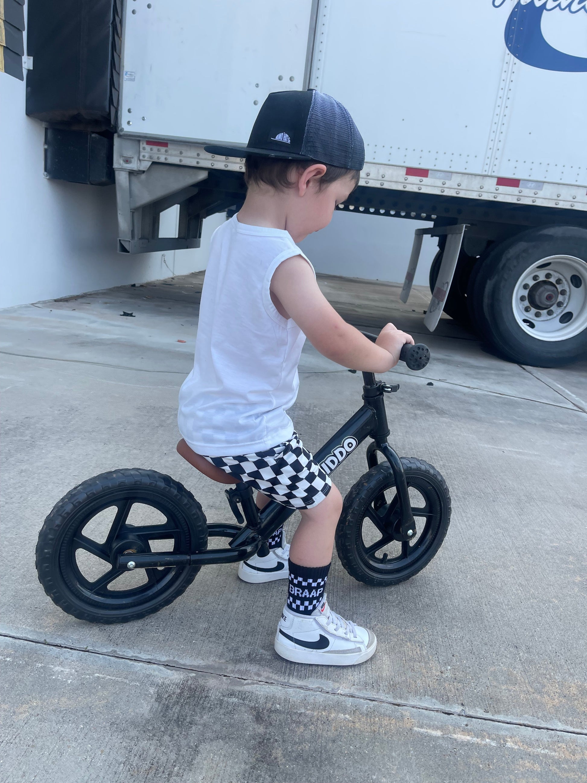 Sizes  Extra Small through Medium have "BRAAP" grips on the bottom of the feet and size large have a stitched "BRAAP" on the bottom of the feet.