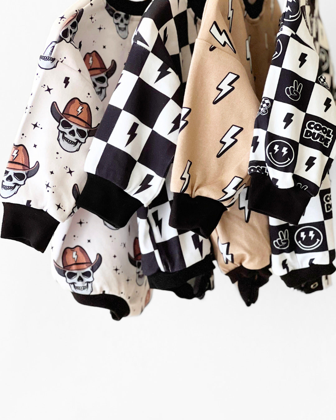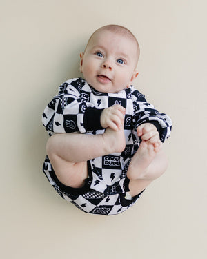 Hey cool dudes! This long sleeve bubble romper is made of super soft and comfy cotton fabric. It's easy to put on and take off with fabric leg openings and bottom snap closures. It'll definitely be a top pick in your wardrobe. Suitable for any time of the year!