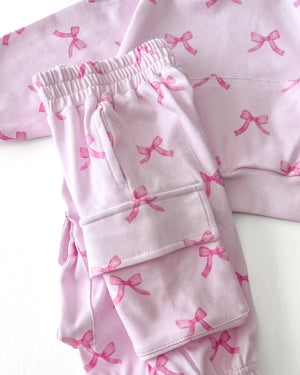 Snuggly Soft with a Side of Sweet: Pink Bows Cargo Jogger Set