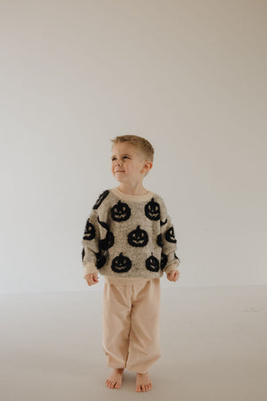 Soft, cozy, and full of seasonal spirit—the Pumpkin Sweater pairs timeless comfort with bold black jack-o’-lanterns for the perfect touch of festive style. The ultimate pick for pumpkin carving, trick-or-treating, and all your fall adventures—your must-have Halloween essential.