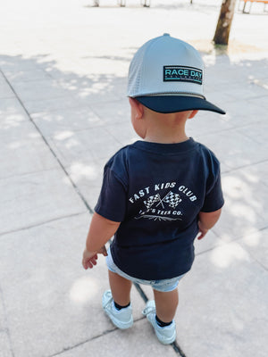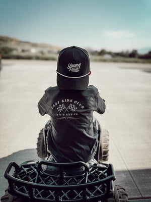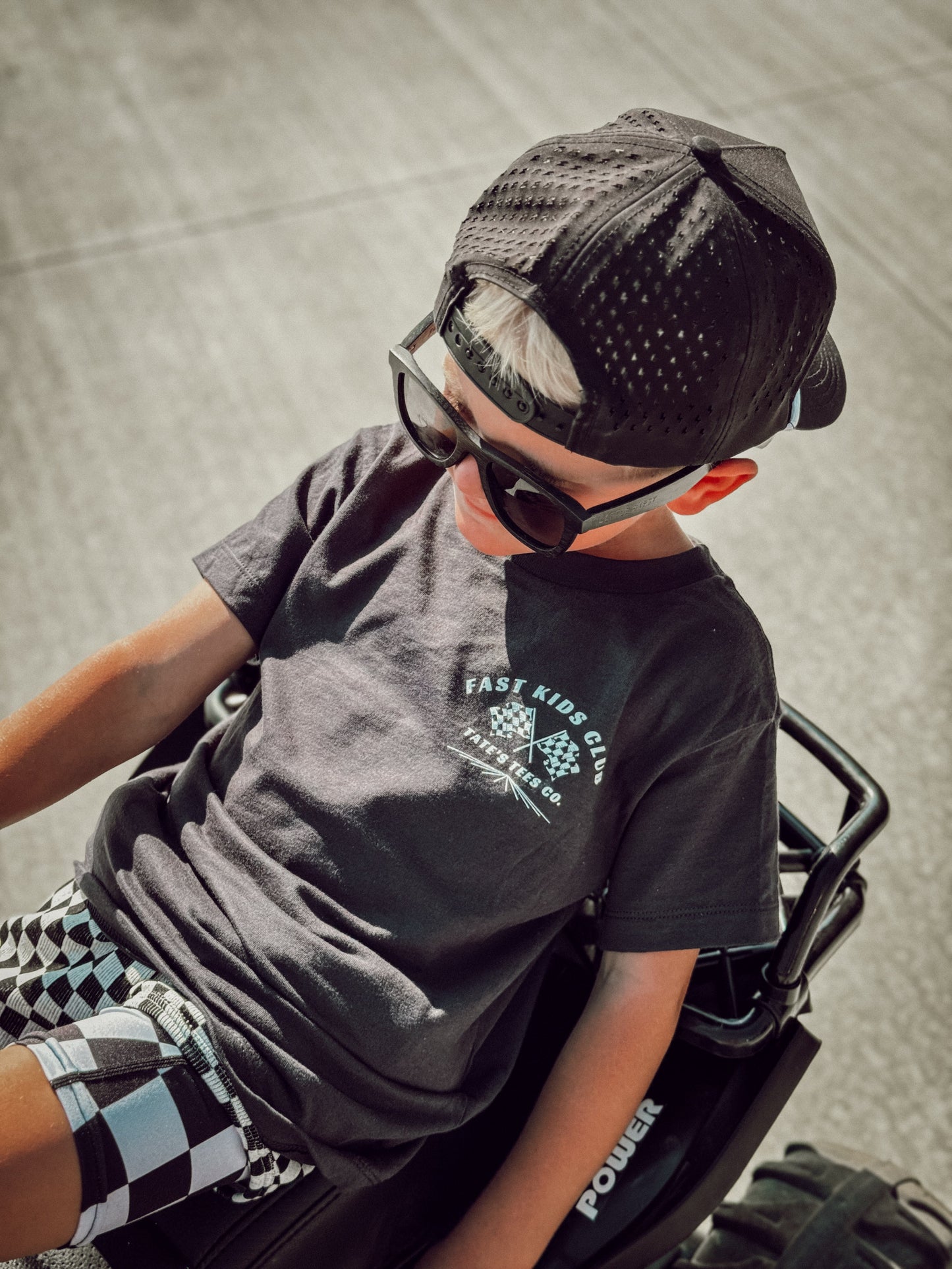 Get your little racer geared up with our new Fast Kids Club tee! Designed for speed & style, this charcoal grey tee is perfect for your fearless little adventurer!