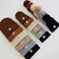 Our signature ff knit beanie in grey! Crafted from soft, breathable yarn, its classic ribbed design guarantees a snug fit. Perfect for the entire family