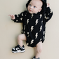 Hooded Bubble Romper | Black Bolts