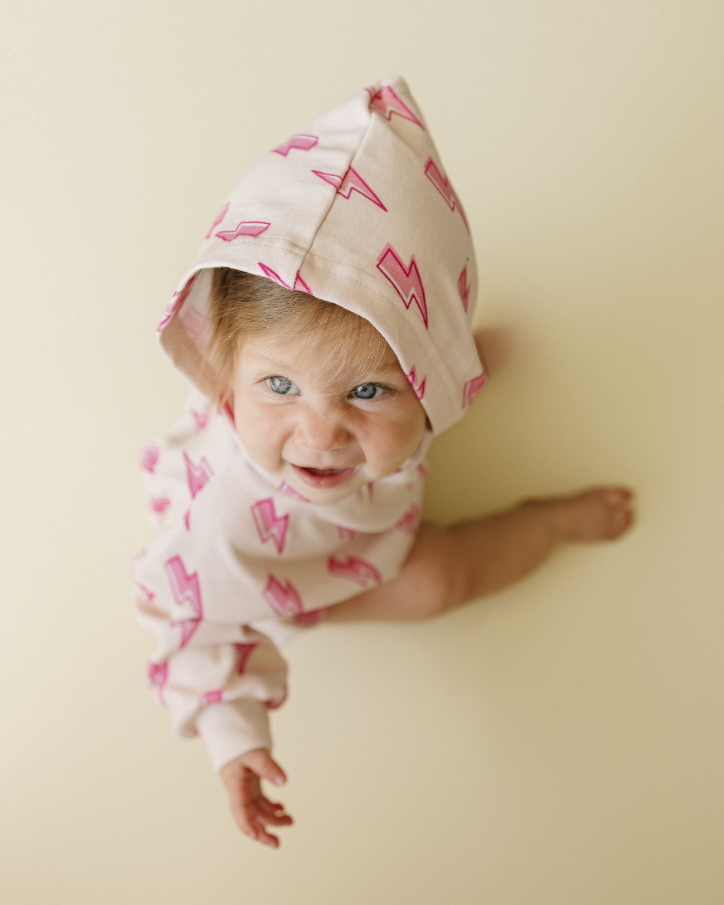 For the coolest kid on the block, this bold bolt-patterned romper is the ultimate fashion statement! Featuring snap closures at the bottom and easy-to-use leg openings, this piece is sure to become a beloved staple in your little one's wardrobe! Available from newborn to 2 years old.