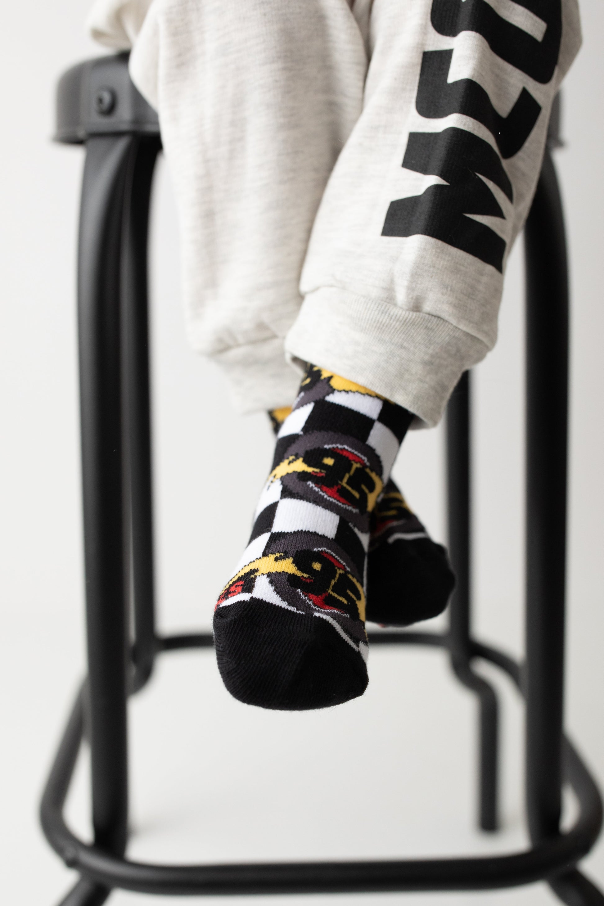 Sizes Infant, Extra Small, Small, Medium have logo grips on the bottom of the feet large have a stitched logo on the bottom of the feet.