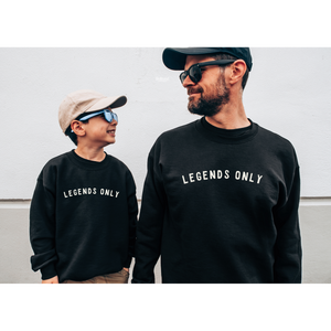 Kids: Screen Printed on shop custom, fleece lined crewnecks.