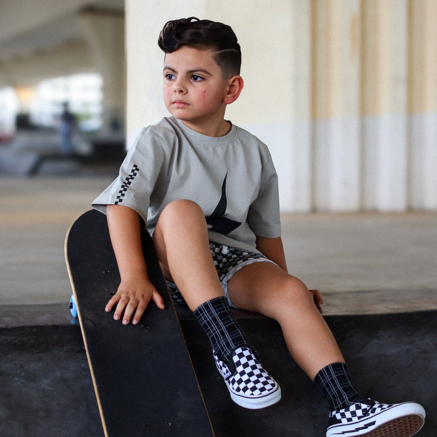 Crafted from premium, ultra-soft cotton, this tee offers both comfort and durability, making it a go-to for everyday wear. The timeless Vintage Gray color gives it a classic look that’s easy to pair with anything—whether he’s out exploring or hanging out with friends. Designed with an oversized fit, this tee provides plenty of room for growth, ensuring that it lasts through all of his wild adventures.
