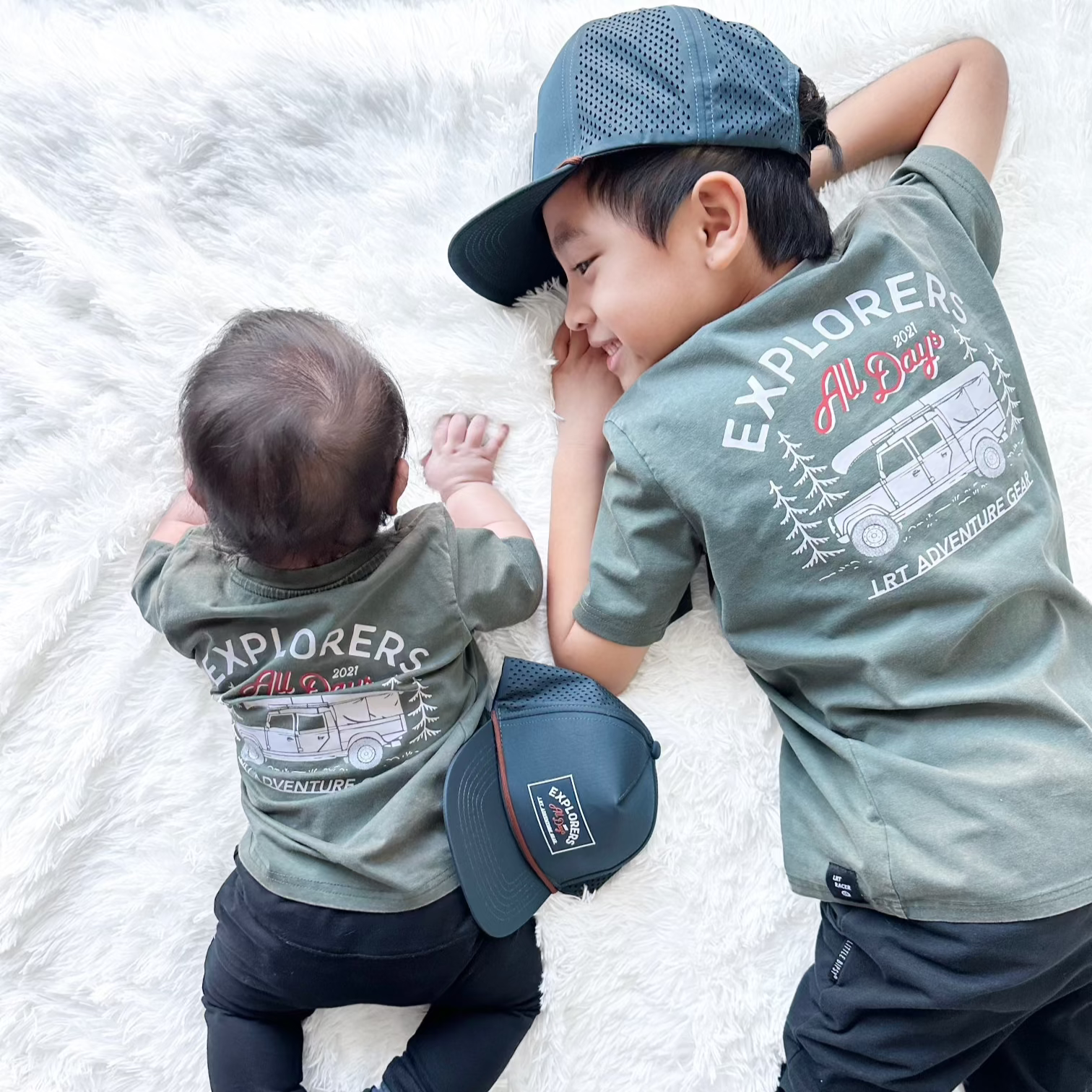 • Adventure-themed Explorer graphic for boys who love the outdoors