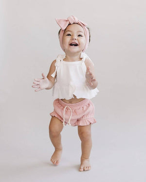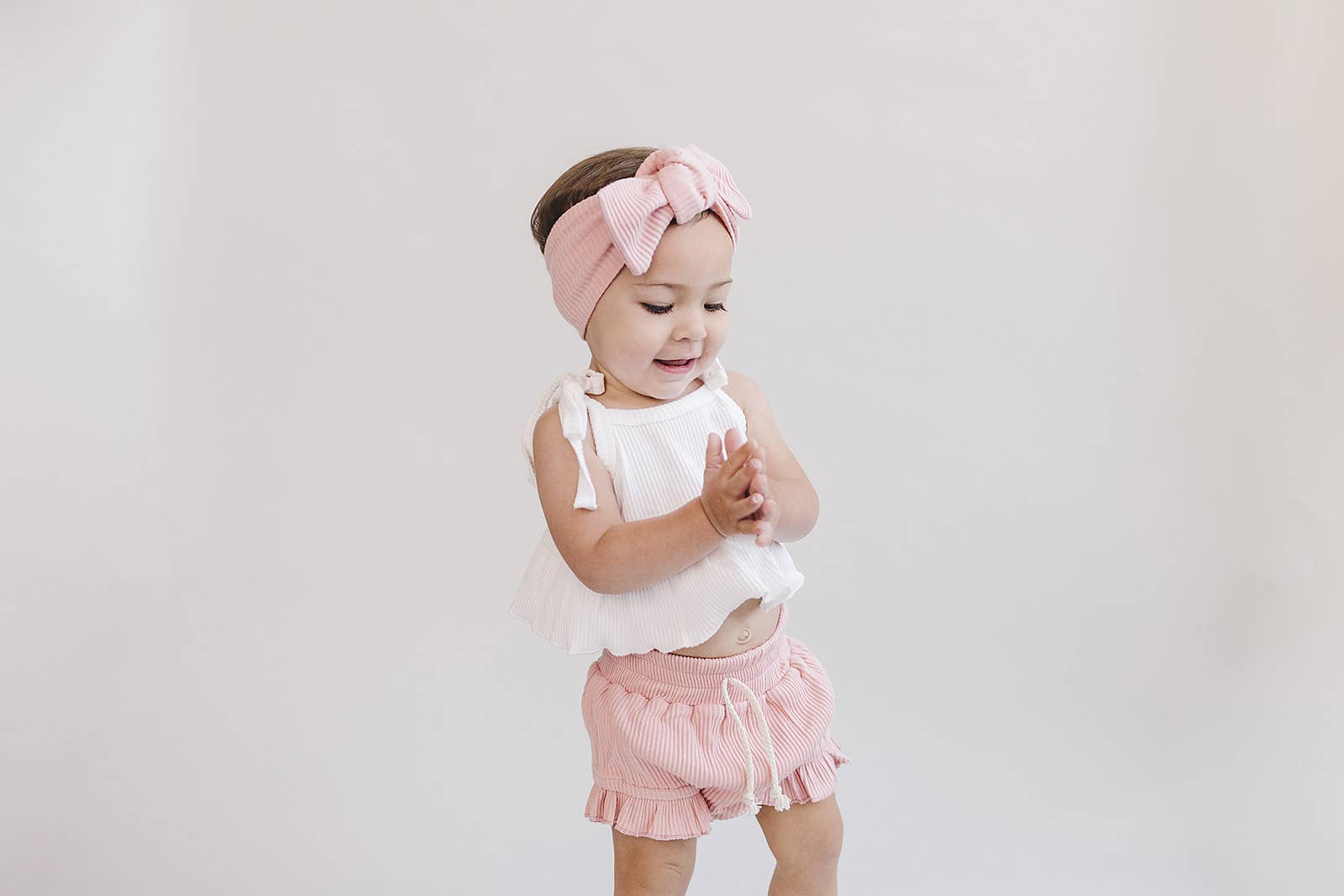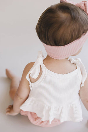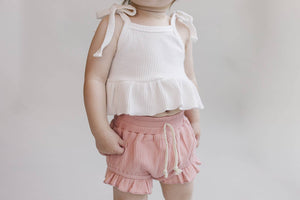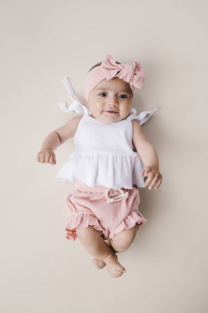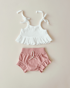 Let them twinkle & shine in this adorable two-piece baby girl set! This sweet & stylish set is crafted from super-soft ribbed fabric, with a crop top and coordinating shorts that'll keep her comfy all day long. And with its pastel pink hue, she'll be blushing in the cutest way! Perfect for any occasion. Fits true to size. 95% cotton, 5% spandex