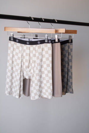 Men's Bamboo Boxers (3 Pack) | Checkerboard & Faded Brown Checkerboard