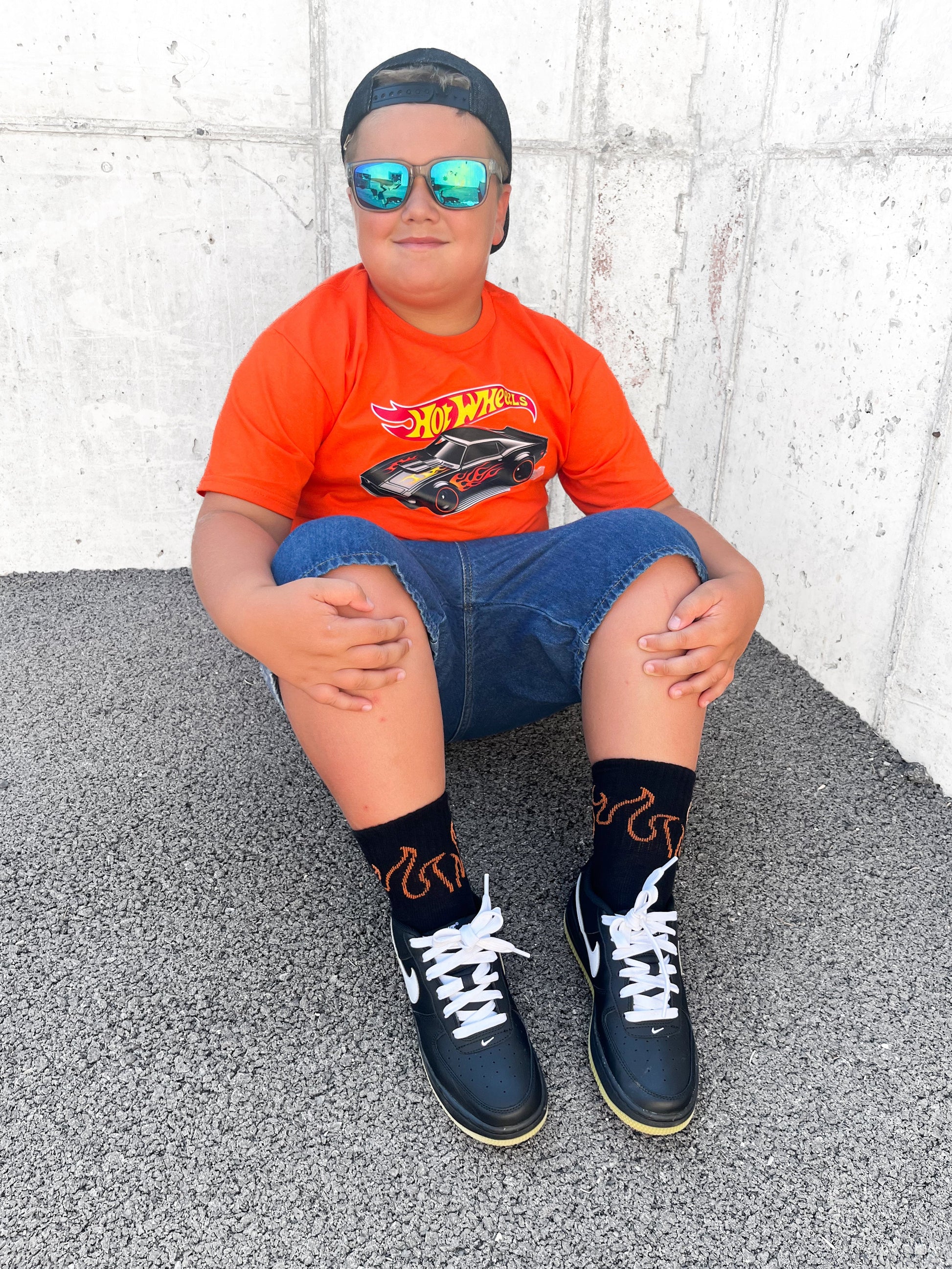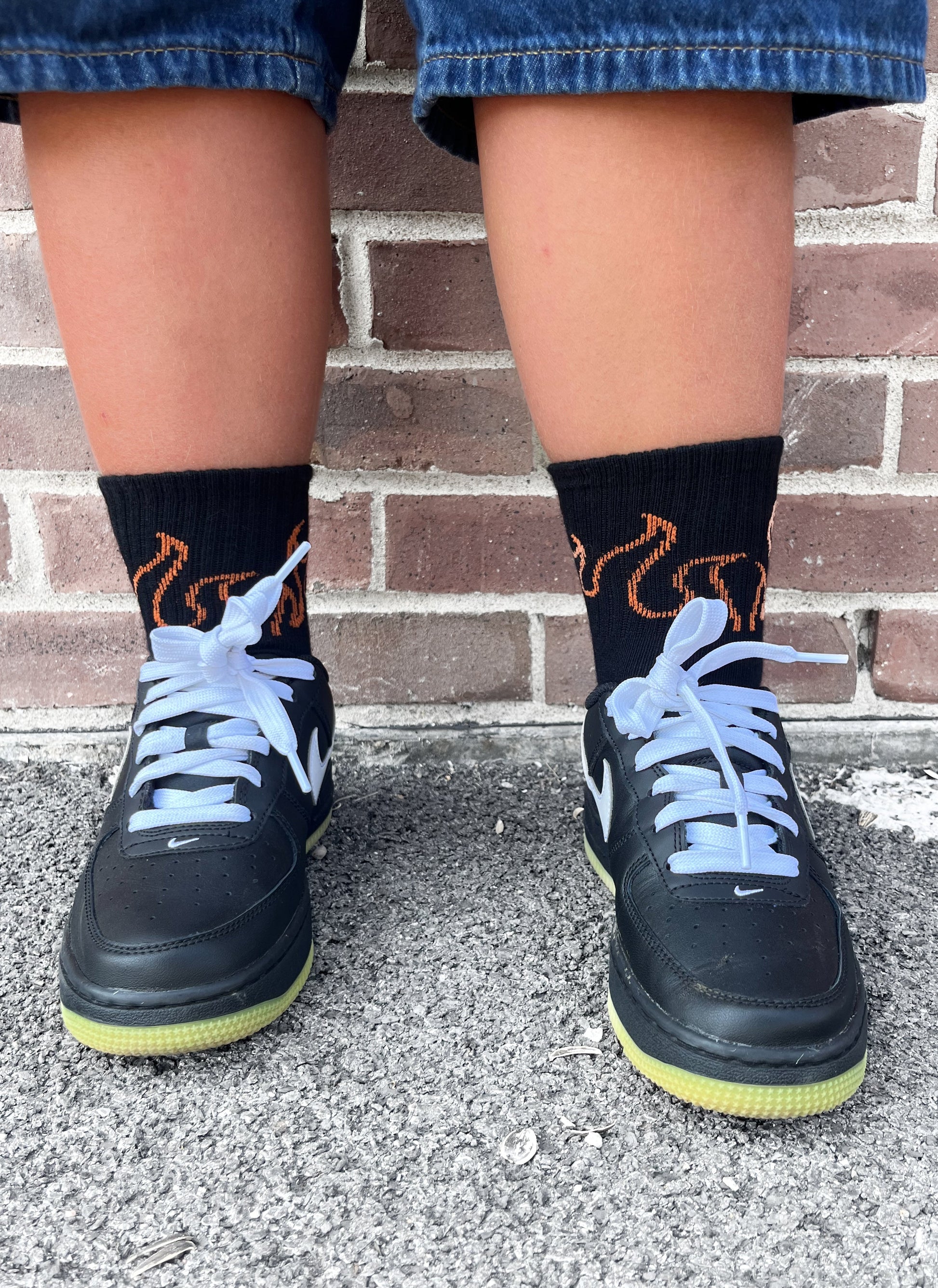 Sizes Infant, Extra Small, Small, Medium have logo grips on the bottom of the feet large have a stitched logo on the bottom of the feet.