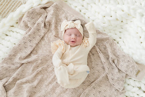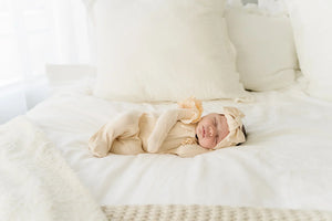 Get ready for an adorable and cozy outfit with this gender-neutral baby footie set, which includes a matching headband. Made from 100% organic cotton, it is soft, breathable, and gentle on delicate newborn skin. Designed in neutral colors, this set is perfect for your baby’s first day at home, everyday wear, or as a baby shower gift.