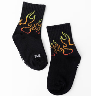 Sizes Infant, Extra Small, Small, Medium have logo grips on the bottom of the feet large have a stitched logo on the bottom of the feet.