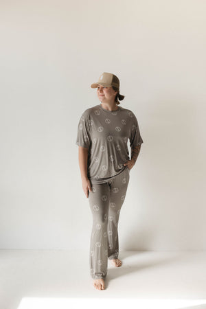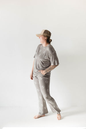 Our staff's top pick is the bamboo oversized short sleeve pajama set! We adore the ultra-cozy oversized tee and the stylish slight flare pants. Don’t forget to check out the matching baby and toddler pajamas in this adorable print!