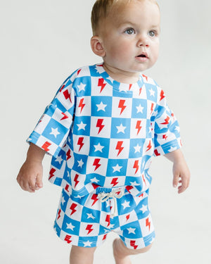 Made from high-quality cotton and featuring a modern pattern, this set is the perfect essential for your little one's wardrobe.