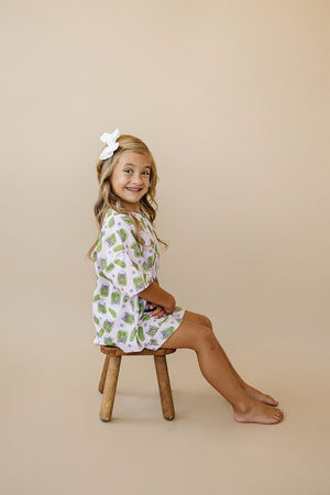 With hand-drawn pickles, jars, and little flowers on soft lilac cotton, it’s bold, comfy, and just the right amount of playful.