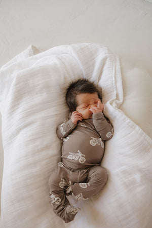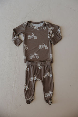 Sleep easy with our dirt bike sleepy-time set! Crafted with bamboo and featuring a cozy footed two-piece design, this adorable lounge set will keep your little one comfy and secure. it's the perfect choice for a night full of sweet dreams or a day of adventure!