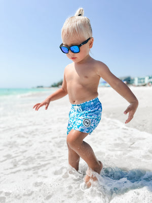 Our AK swim is back, our hybrid swim makes for play + swim wear. Fit true to size however babies come in all shapes and sizes! Some may require a wider waist band which may require sizing up. This style is a little more fitted with a shorter length.