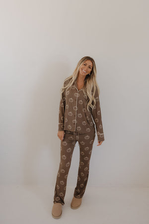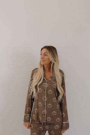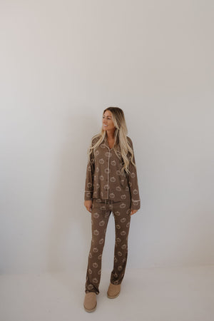 Women's Bamboo Button Up Lounge Set | Brown Pumpkin
