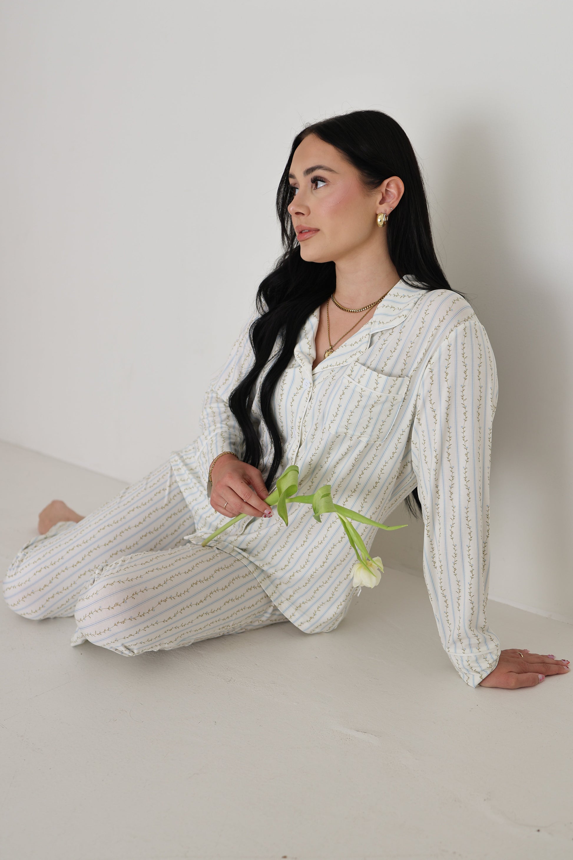 Women's Bamboo Button Up Lounge Set | Dainty Vines
