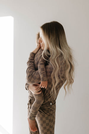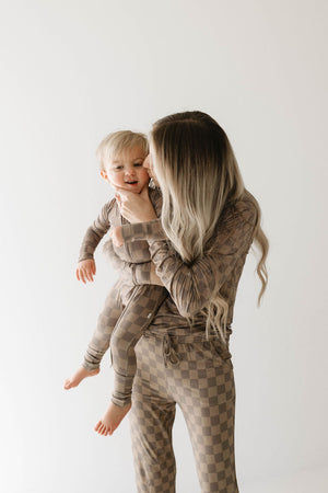 Women's Long Sleeve Bamboo Pajama | Faded Brown Checkerboard