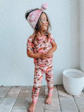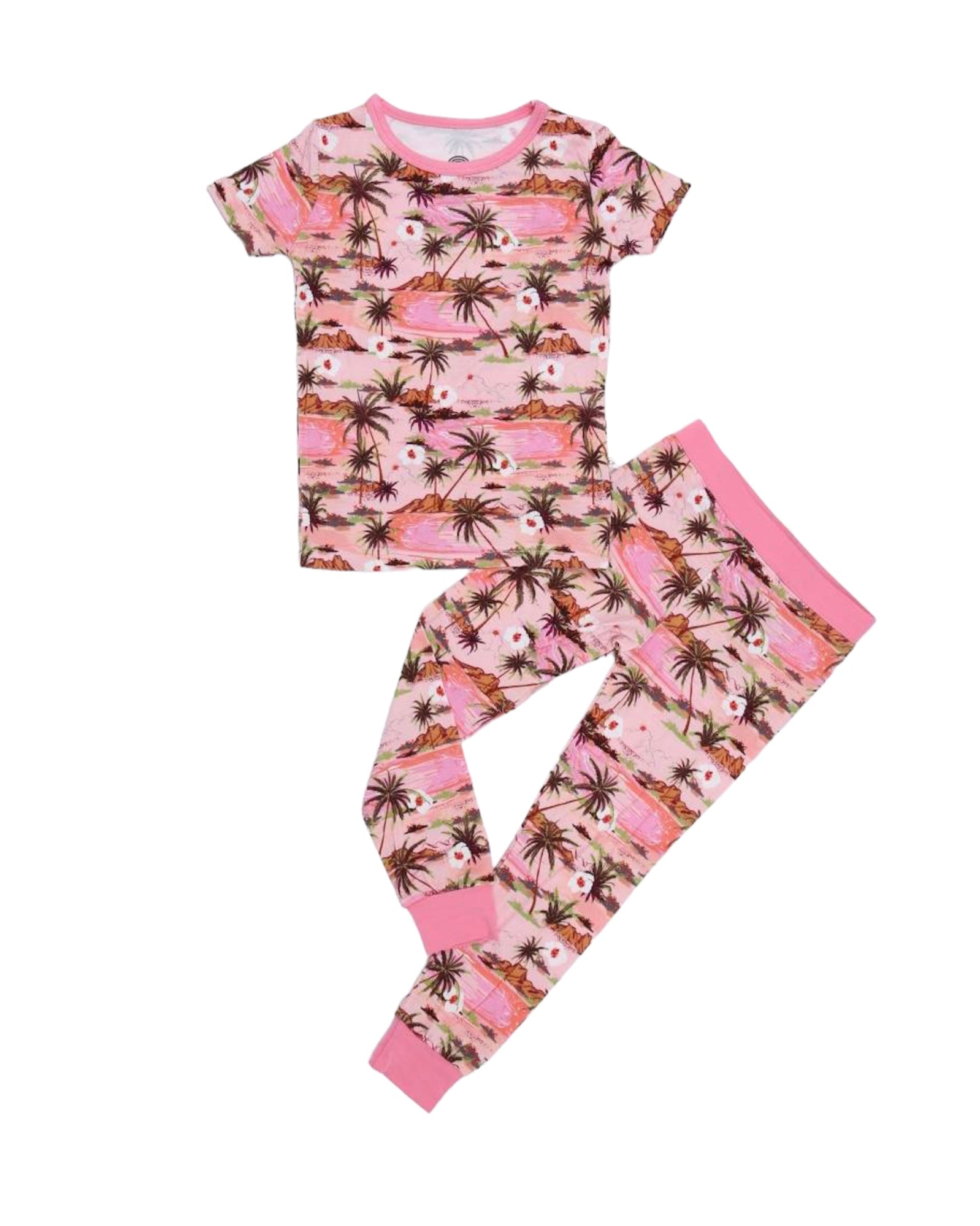 You Had Me at Aloha, But Make it Pink 2 Piece Short Sleeve Pajamas